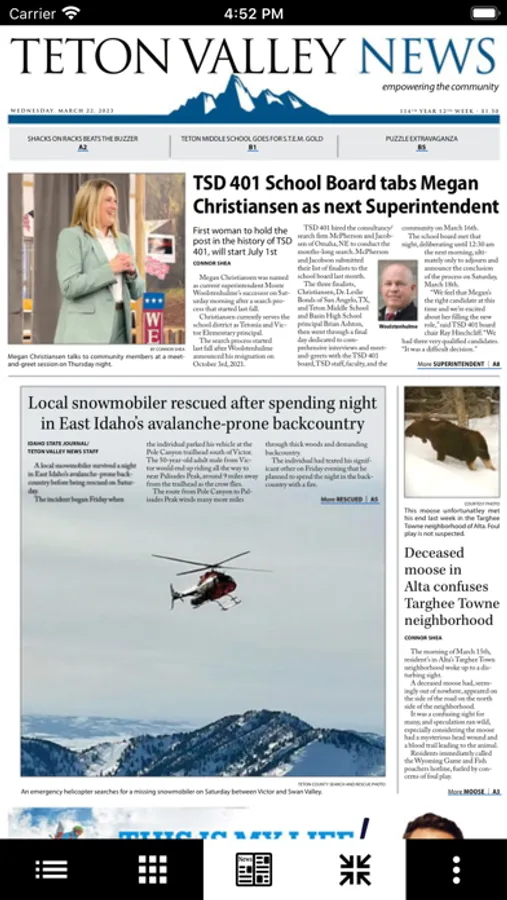 This is a digital replica of the printed Teton Valley News. This app is part of your all access subscription. If you have questions about using the app please contact us at circulation@postregister.com or call Customer Service at (208) 522-1800, press #1.
