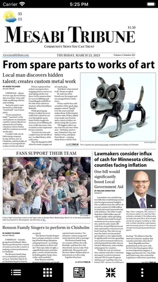 This is a digital replica of the printed Mesabi Tribune. This app is part of your all access membership. If you have questions about using the app please contact us at subscriptions@mesabitribune.com or call 218-741-5544, press #1.