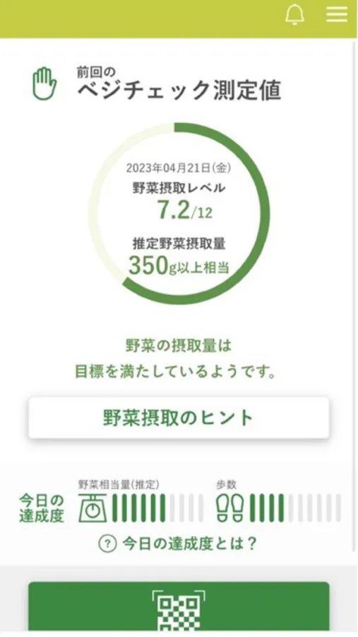 ※アプリ内にベジチェックⓇの機能は含まれません。野菜摂取の推定には、ベジチェックⓇが必要です。