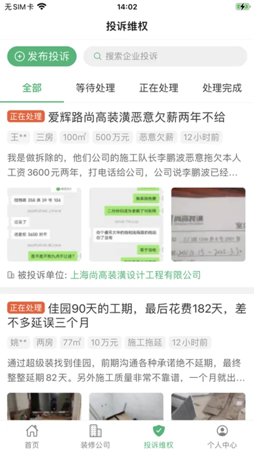 【装修投诉】上海装潢网是提供上海市住宅装修投诉的网络平台:可以帮助业主解决在装修过程中遇到的各种问题,包括价格问题、服务质量、商品质量、施工质量、延期安装、断货等。为了保障业主的利益,网站不会删除任何投诉,全面保障业主利益,为业主装修保驾护航。