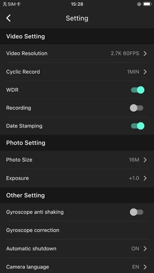 -Camera settings.