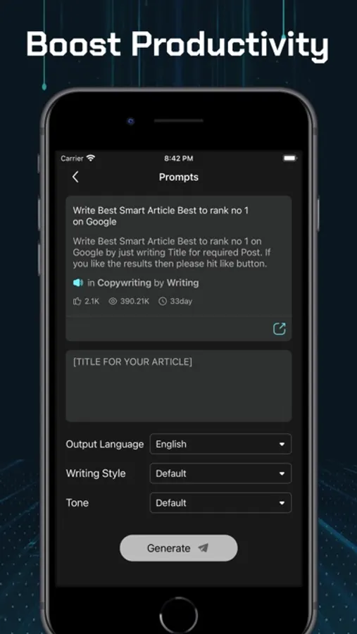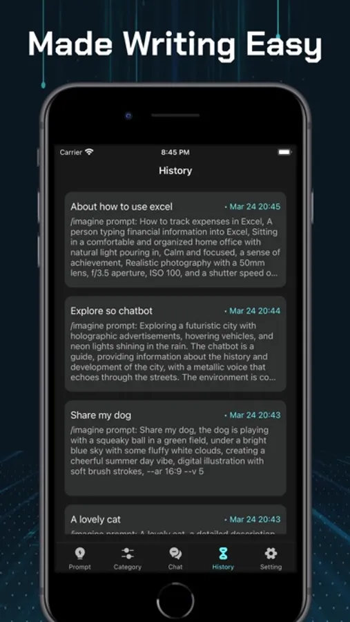 Say goodbye to writer's block with our AI powered prompts app! Our AI prompt app uses state-of-the-art technology to generate unique and thought-provoking writing prompts tailored specifically to your needs for chatbot. Whether you're a blogger, journalist, or creative writer, our product will provide you with endless inspiration and help you boost your productivity.