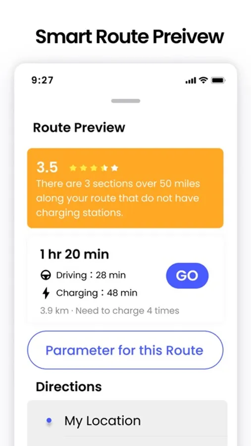 Find Chargers: Our advanced features include automatic trip planning, which adds charging stops based on your current battery level and factors in traffic conditions, temperatures, and elevations. Our route preview offers a comprehensive view of your journey, including travel time, distance, and total charging time. The advanced navigation system provides real-time traffic information for the most accurate directions. We provide detailed information about each charging station, including location, available slots, charger types, pricing, and amenities. We also alert drivers about charging stations located in high-crime areas for added safety.