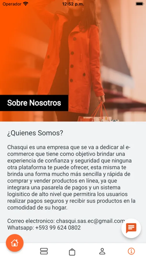 Chasqui es una empresa que se va a dedicar al e-commerce que tiene como objetivo brindar una experiencia de confianza y seguridad que ninguna otra plataforma te puede ofrecer, esta misma te brinda una forma mucho más sencilla y rápida de comprar y vender productos en línea, ya que integrara una pasarela de pagos y un sistema logisitico de alto nivel que permitira los usuarios realizar pagos seguros y recibir sus productos en la comodidad de su hogar.