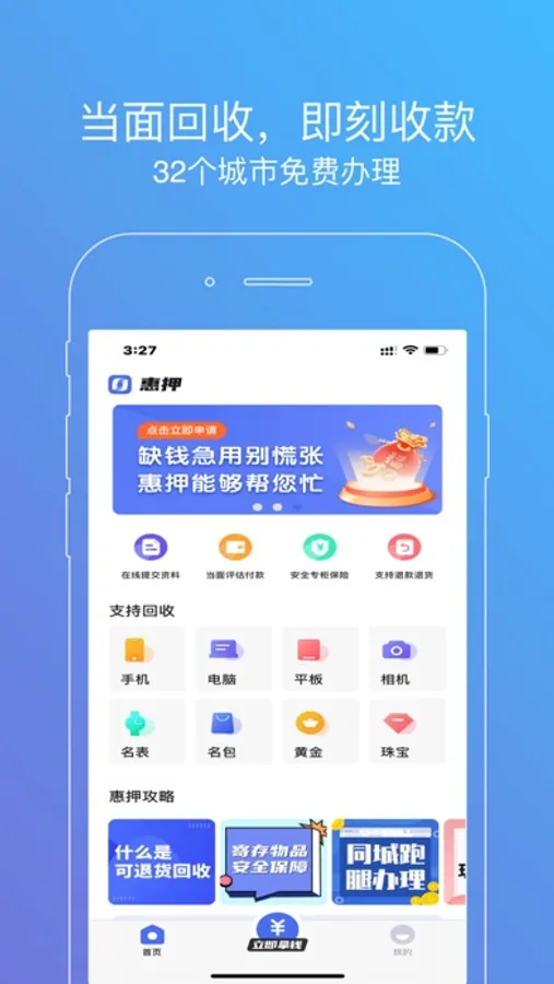 惠押是一个便捷、安全的互联网+回收寄存专业平台,可实时提供最新二手手机、二手平板、二手数码单反相机、二手笔记本电脑、珠宝首饰、闲置包包、名包等奢侈品交易/回收/抵押典当行情估价,通过闲置物品回收/寄存为用户提供数百到几万不等的变现服务,助力绿色循环经济,使旧物换新颜,焕发新生机!