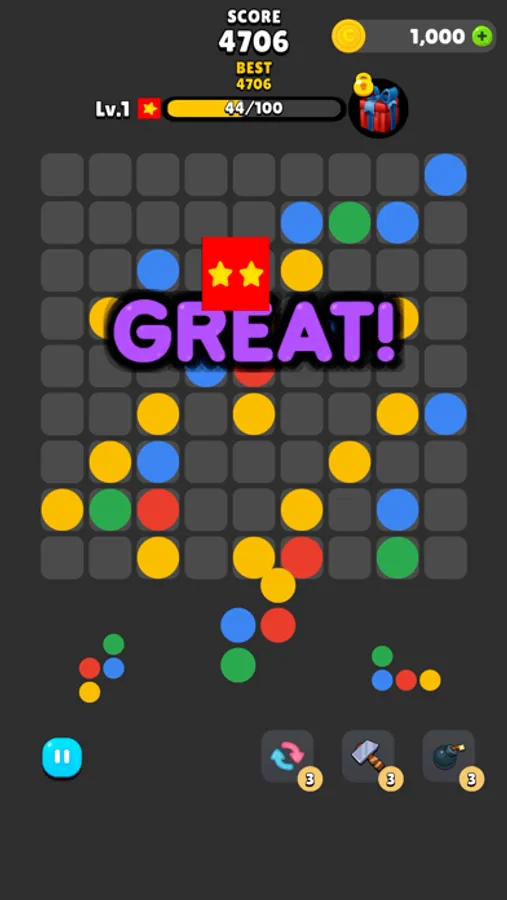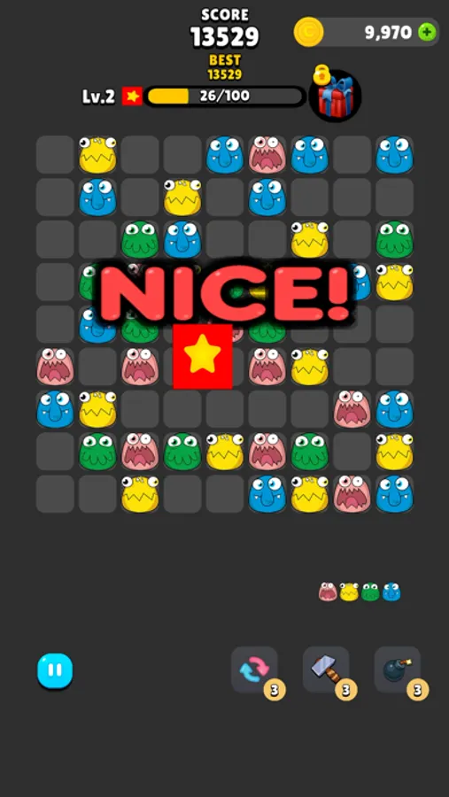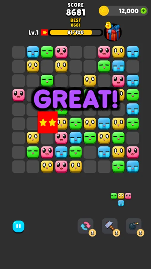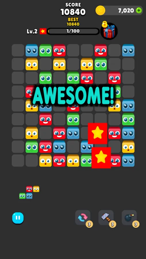 - If you match blocks of the same color, the blocks merge and disappear.