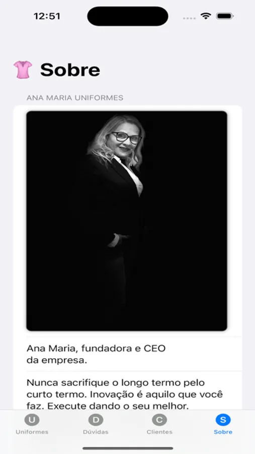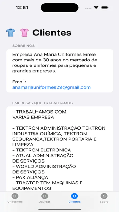 Empresa Ana Maria Uniformes Eirele com mais de 30 anos no mercado de roupas e uniformes para pequenas e grandes empresas.