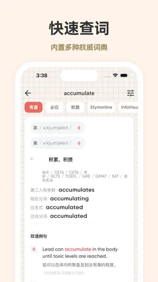 支持金山、欧陆、有道、朗文、牛津、剑桥、柯林斯等权威词典