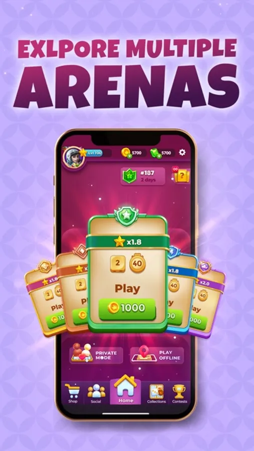 - Play with better players as climb up the levels