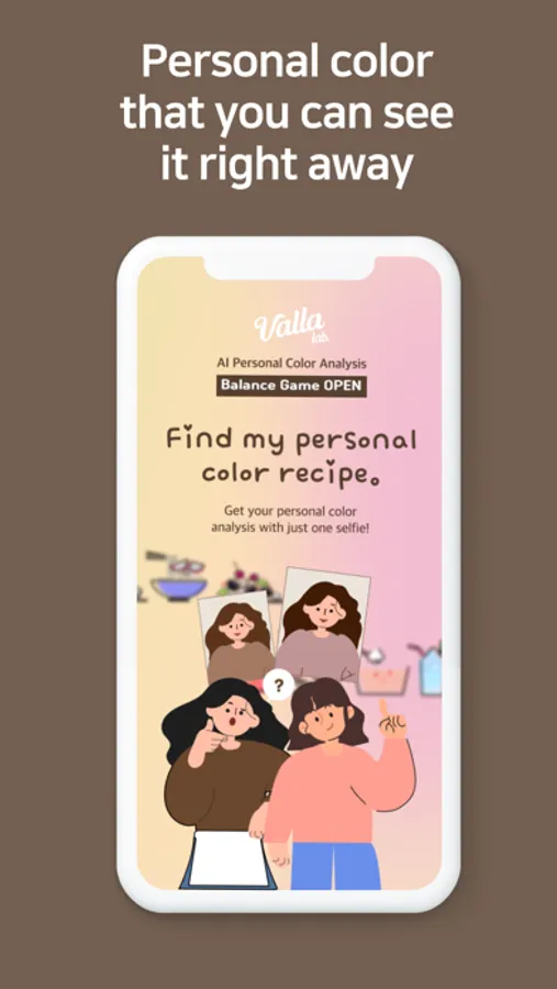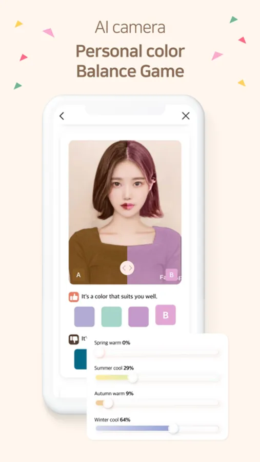 Check out the balance game where you get a personal color diagnosis with one AI camera selfie now.