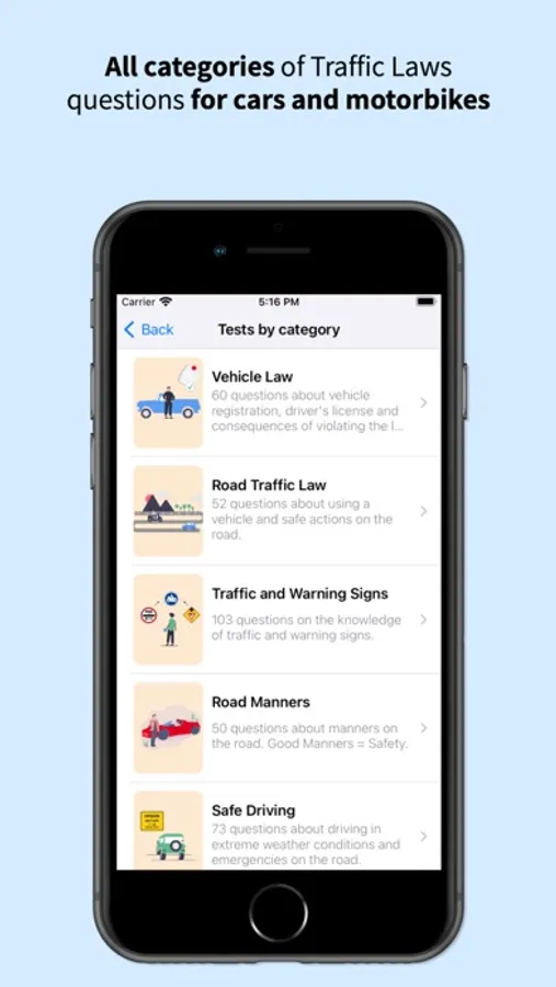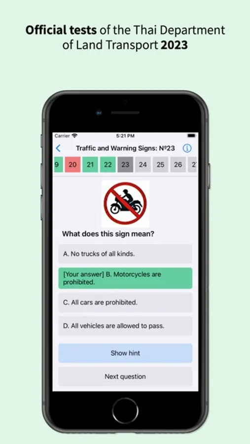 - Thai Driving License Exam mode like in the Thai Department of Land Transport