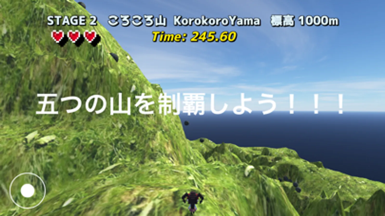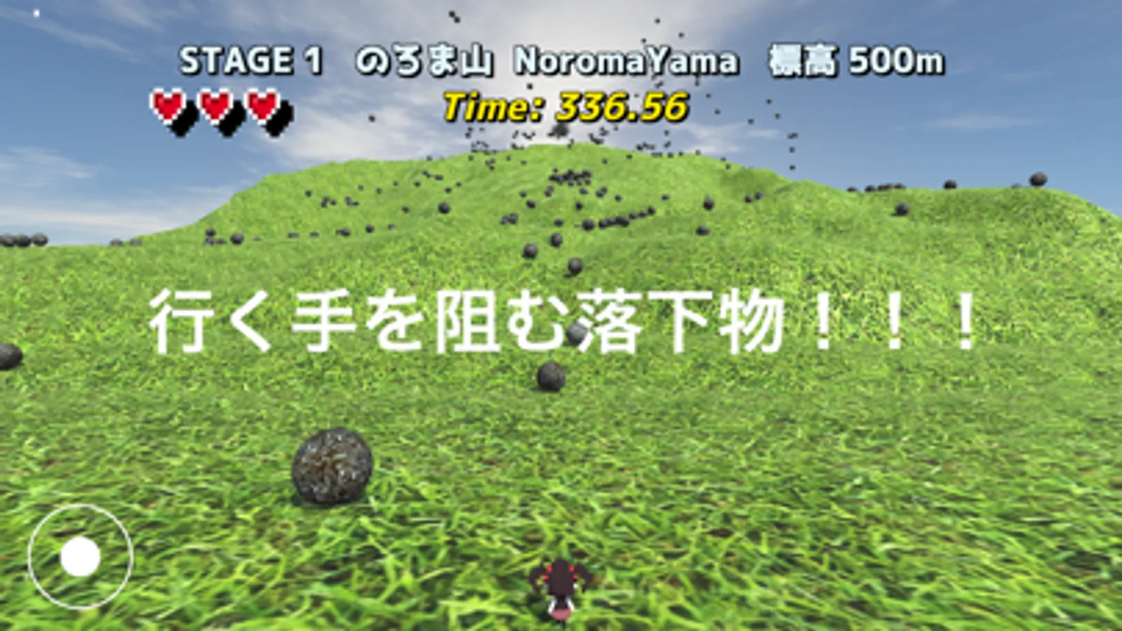 主人公の女の子を仮想ジョイスティックで操作して五つの山の頂上を目指そう!!!