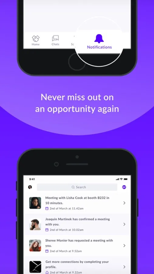 Whatever your event objectives may be, the app AI Recommendations are the quickest and most efficient way for attendees to network, connect with the right exhibitors/attendees, set up meetings and expand their network at each event.