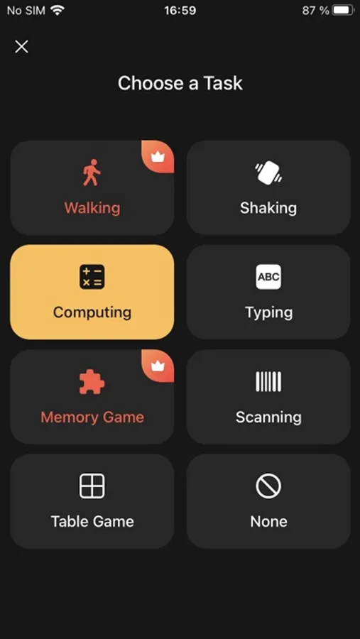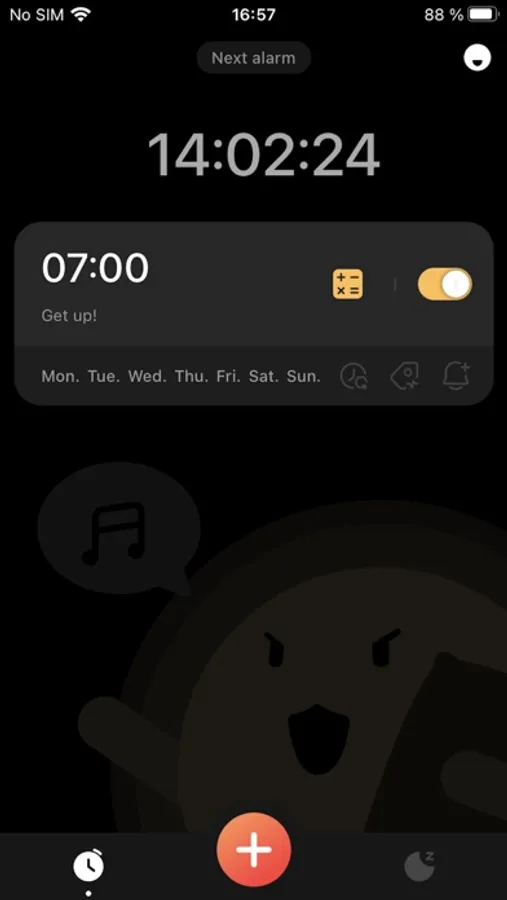 b. Turn off the alarm, which can be set to be conditional on completing certain tasks, the completion of which activates the user's body and brain.