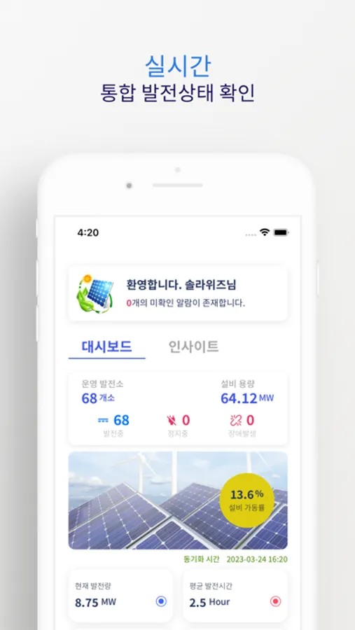 위즈원은 신재생에너지 발전설비를 관리하고 모니터링할 수 있는 플랫폼입니다.