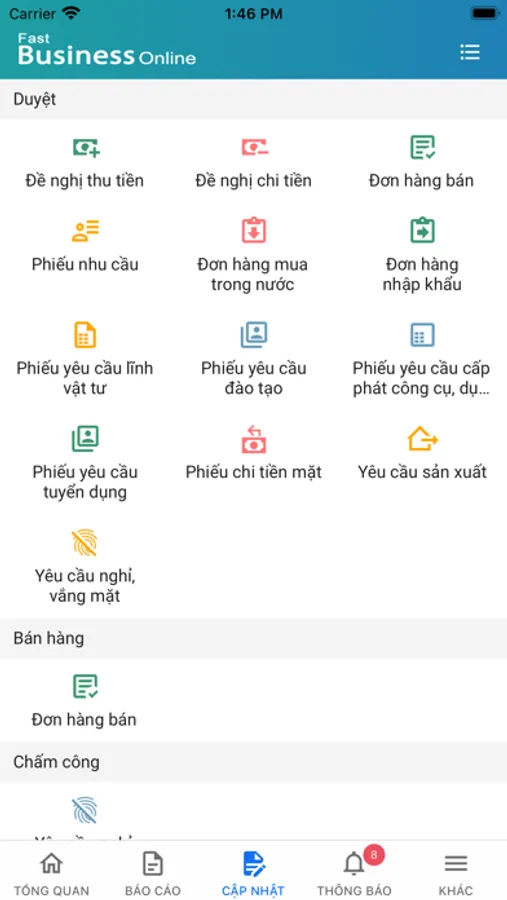 Là lợi ích vô cùng lớn của Fast Business cho người dùng là có thể làm việc, truy cập dữ liệu công ty từ xa qua internet, kể cả trên điện thoại di động, kết nối qua 3G.