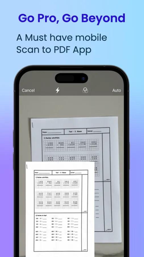 The PDF scanner App offers a variety of features like: auto vs manual scanning to pdf, edit/crop/rotate scanned files, apply filters for scanned files, turn on/off camera flash, auto-detect the document edges. The user can scan multiple pages, then save them as part of a document.
