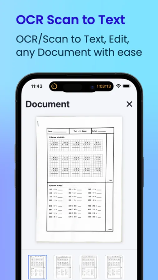 During your scanning process, the Scan to PDF App will offer you to OCR (text recognition) your scanned documents so you can later save and edit the documents. A truly powerful PDF editor feature.