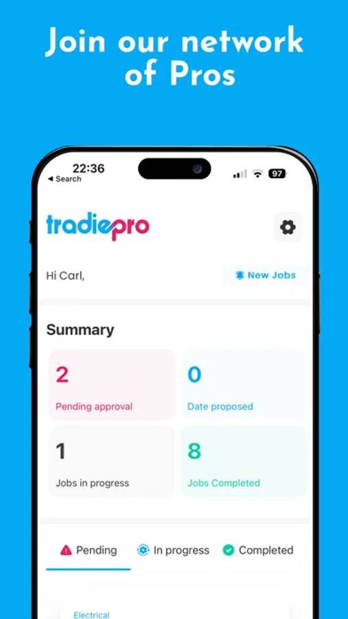 Download TradiePro today and take your business to the next level. Get connected with customers, earn money, and show off your skills. It's time to get to work!