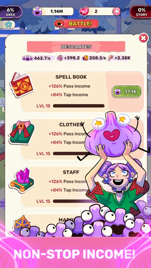 Click, tap, make Figs from the Location. Help Alice to progress through narrative story in idle mode.