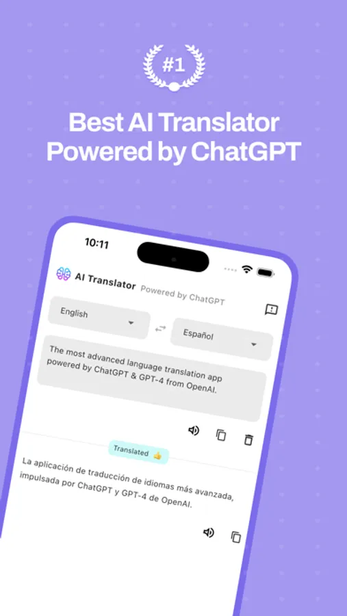 The most advanced language translation app powered by ChatGPT & GPT-4 from OpenAI. Seamlessly connect with people, content, and cultures across the globe using the power of artificial intelligence.