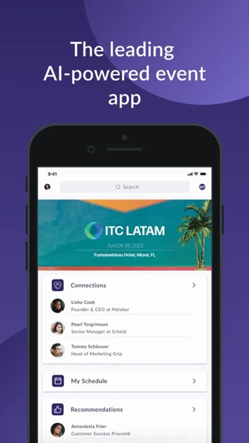 The ITC LATAM app provides access to all event information and exclusive networking opportunities found only in the app! View the full agenda, sponsors and event maps and connect with attendees and sponsors – make connections, chat and schedule meetings. Download the ITC LATAM app today!