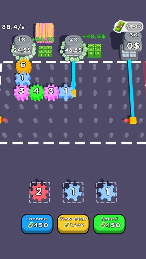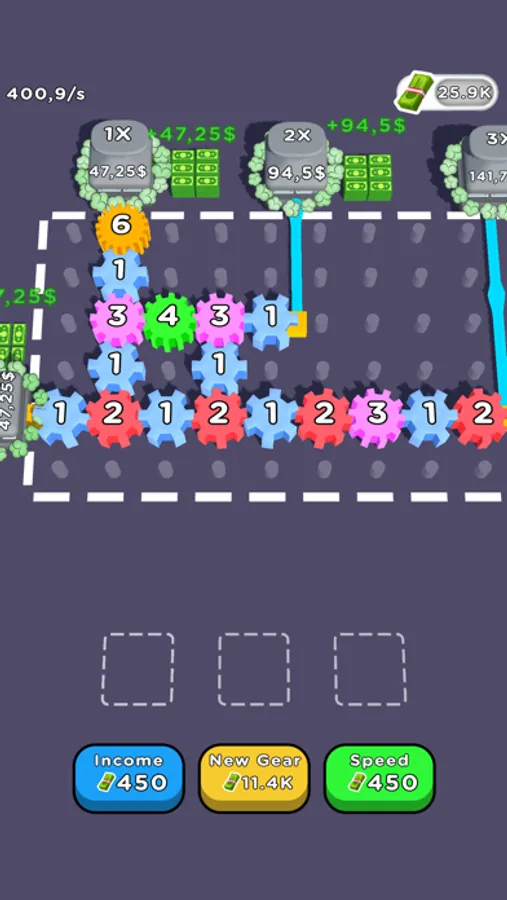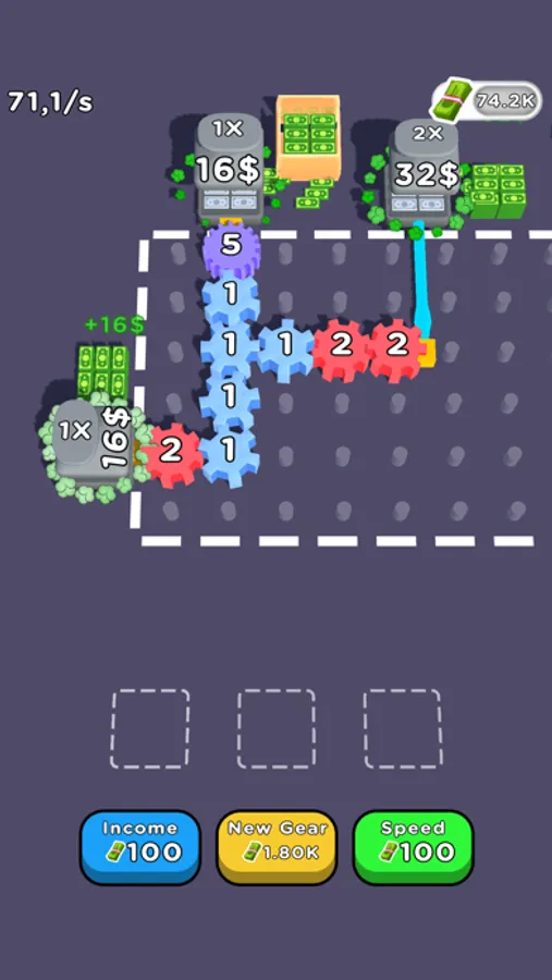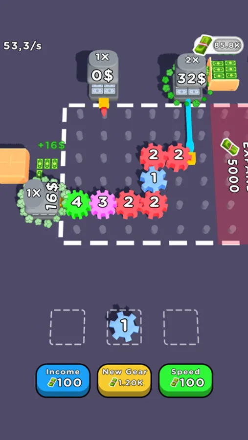Merge gears drag drop them to field run machines with pipe connections and print money!