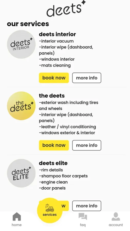 deets app will let you conveniently book your car detailing at home and offices.