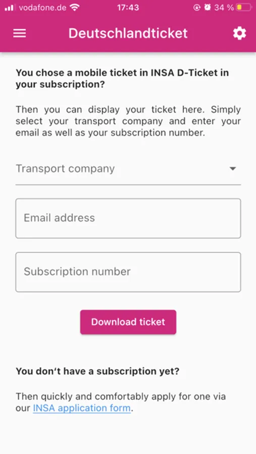 As soon as you have received your subscription number, you can download your D-Ticket into the app. You will find out which transport companies you can do this with when you subscribe. Once you have received your subscription number, it may take several hours before the data is technically available. Please be patient.