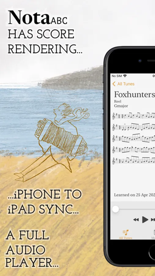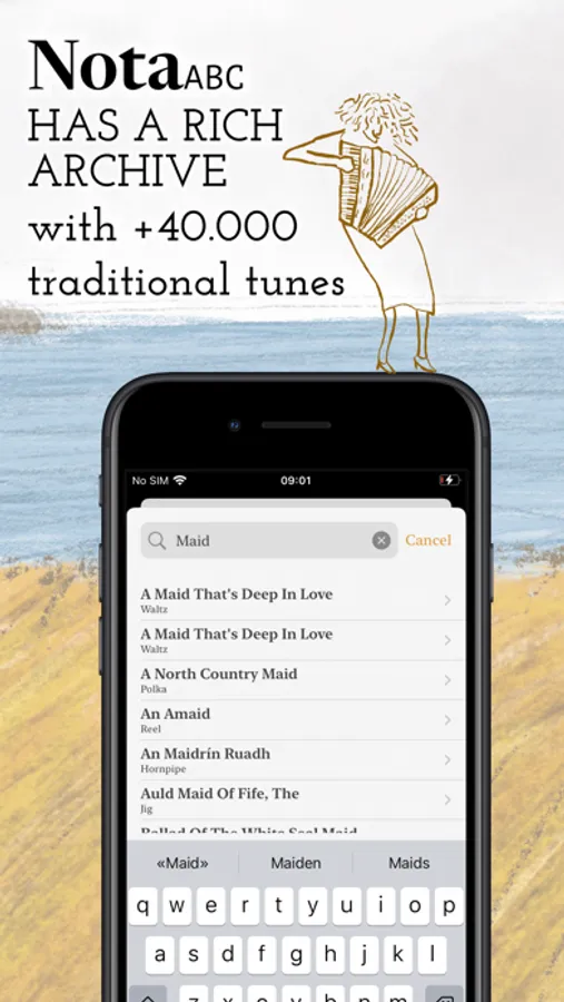 With an archive of +40.000 tunes, Nota ABC lets you pick and add tunes to your repertoire.