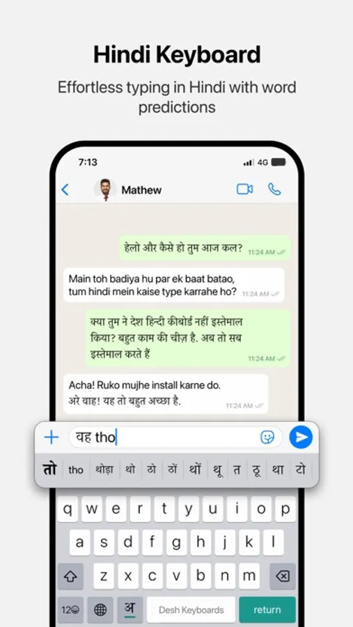 Desh Hindi Keyboard is a keyboard extension that makes Hindi typing super easy: