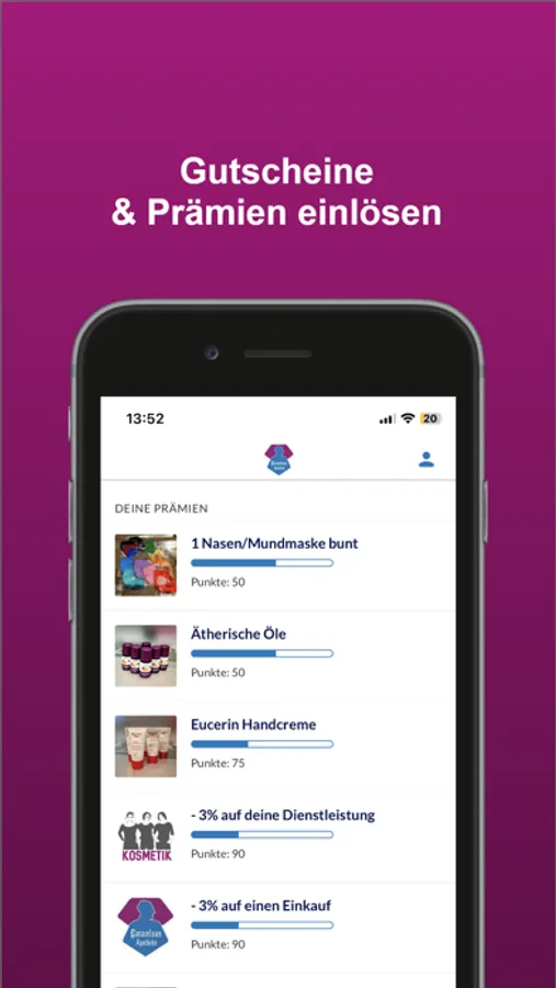 Du kannst durch verschiedenste Aktivitäten Punkte sammeln und diese anschließend gegen Gutscheine und Prämien einlösen.