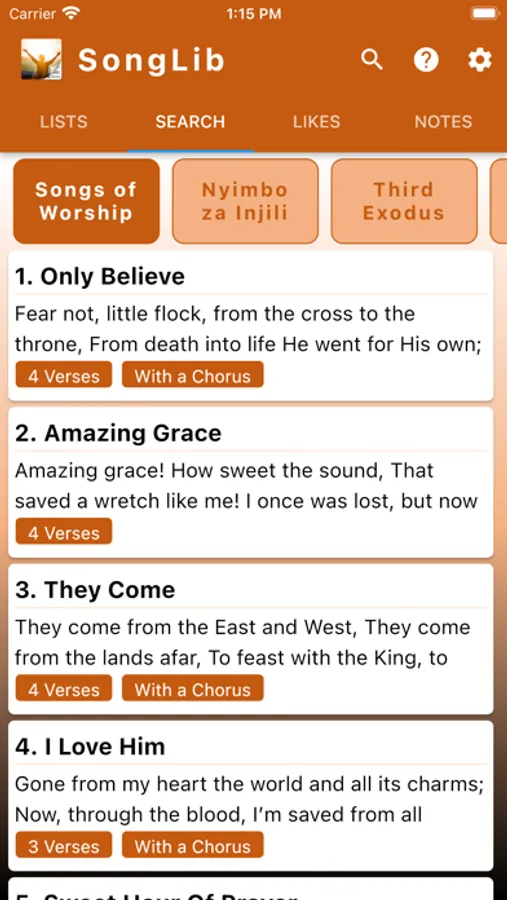 SongLib gives you access to your church songbook/hymns seamlessly that you don't have to worry about even being online once you have set up the app on your device.