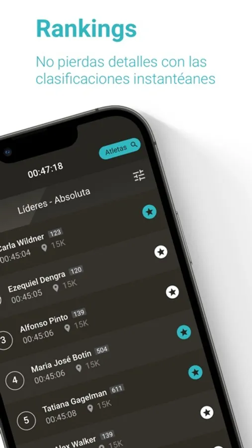 Además, podrás acceder al instante a la clasificación: por categorías, los primeros corredores por tramo y el último punto alcanzado de los participantes que hayas seleccionado.