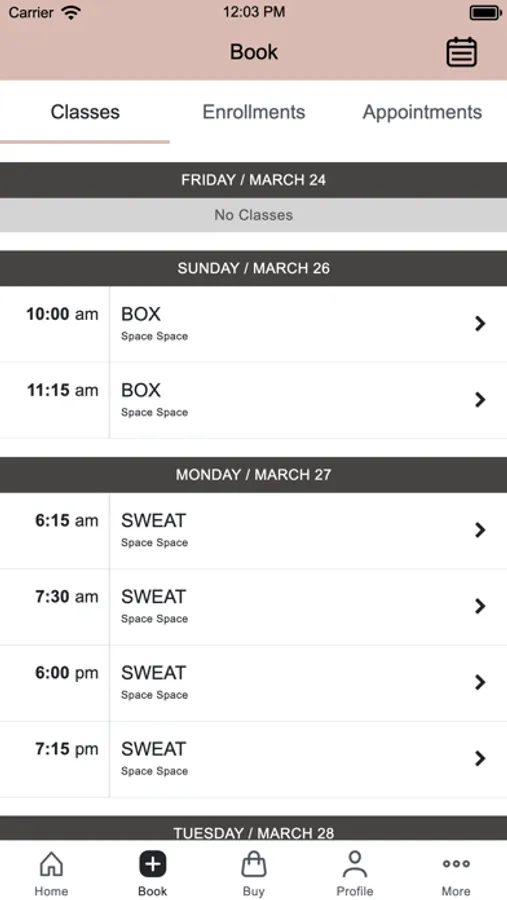 From this mobile app, you can view class schedules, sign-up for classes, view ongoing promotions, & view the studio’s location and contact information.