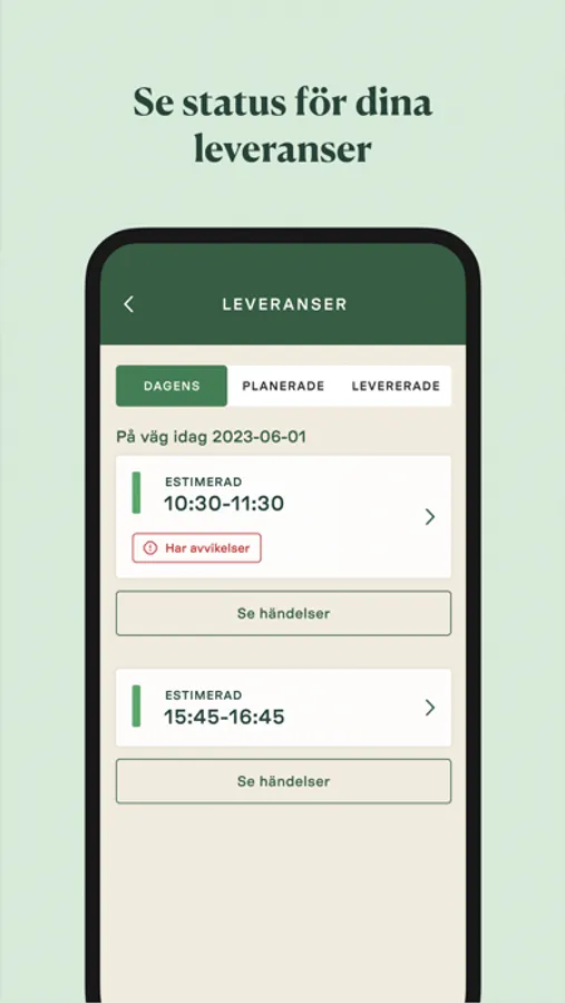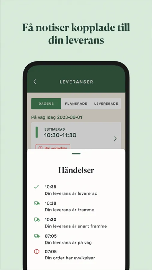 Få notiser direkt till din telefon med aktuell leveransstatus.
