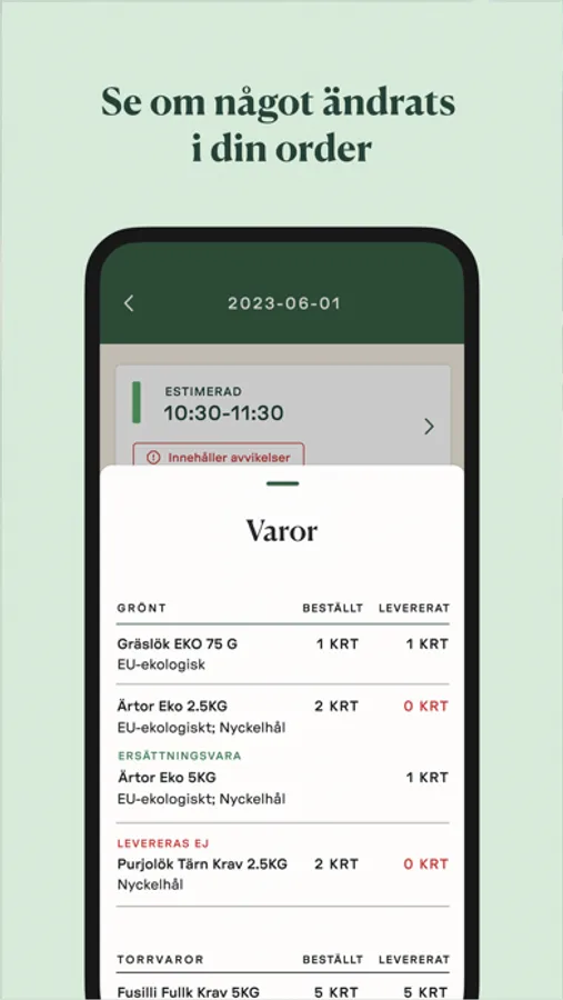 Tydligt se vad som har beställts och om något ändrats i din order.