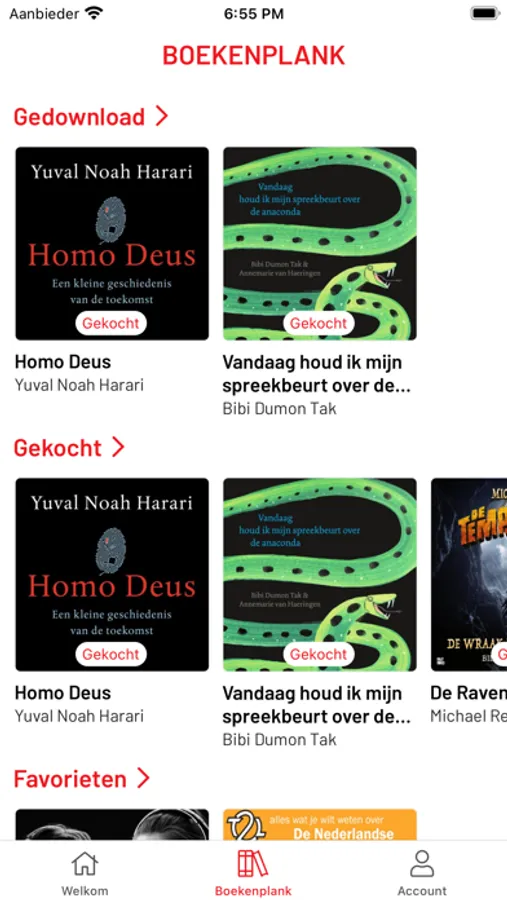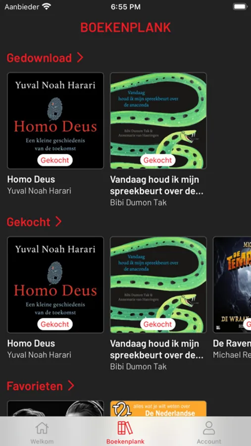 - Boekenplank-pagina bevat nu aankopenlijst, overzicht van gedownloade en beluisterde titels en favorieten.
