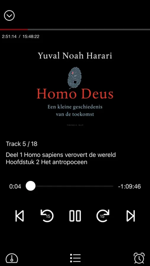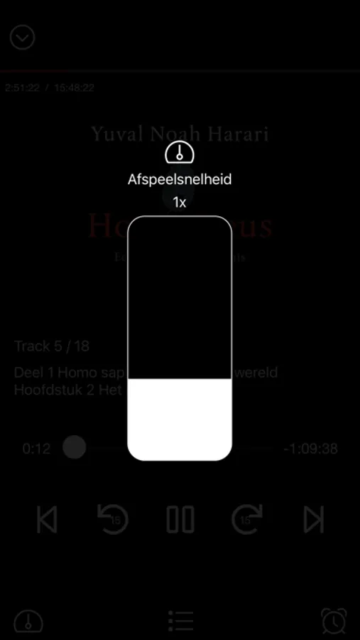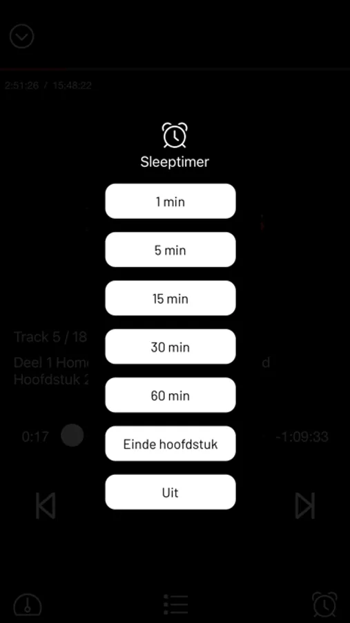 - een slaaptimer, die de app na een ingestelde tijd of aan het einde van een hoofdstuk vanzelf uitschakelt,