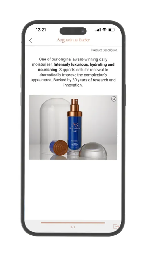 I am finding this app so valuable to enhance my knowledge of every product from Augustinus Bader. Love that I’m able to reference back to a specific product and its ingredients, benefits, method of application and results. Handy learning tool to have at the counter!