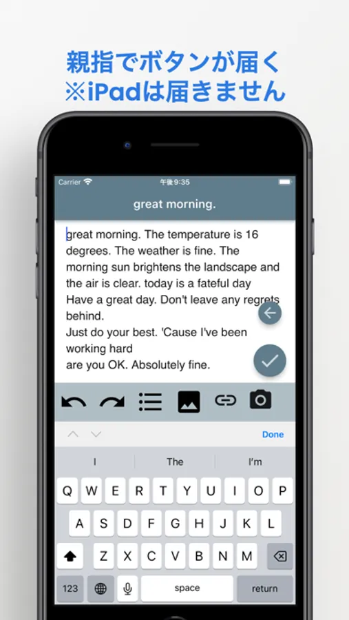今まで使ったメモアプリは保存するときやページの移動でボタンが届かずスマホを持ち直したりしていませんでしか?