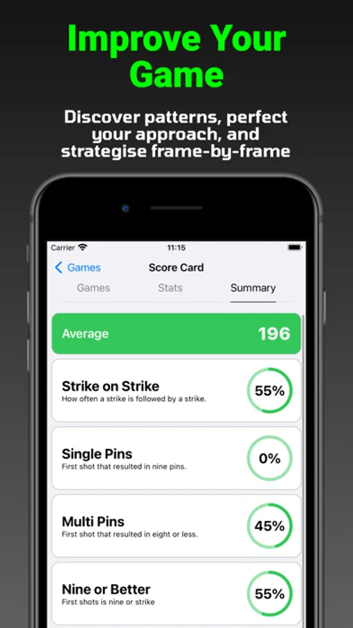 Want to improve your spare conversion rate? Bowling Mate will help you keep track of it. Want to improve your overall average? Bowling Mate has got you covered.