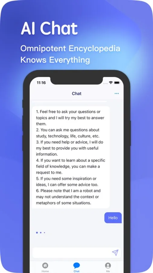 ChatMate is an application that uses the most advanced artificial intelligence technology. It can mimic human conversation and provide you with a natural and authentic dialogue experience. It also has a strong self-learning ability and can truly create content on its own. It can act as your most powerful personal assistant in your life and work.