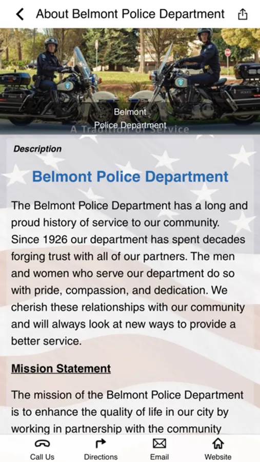 This app is for the employees of the Belmont Police Department, their families, and the community they serve. This app contains information about the department as well as safety and crime prevention tips. The Belmont Police Department’s employees and their families will have access to a full range of wellness tools.