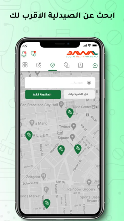 يتيح لك الحصول على سهولة البحث عن الصيدليات ، و يسهل عليك البحث عن صيدليات ، و يسهل عليك معرفة المناوبة منها.