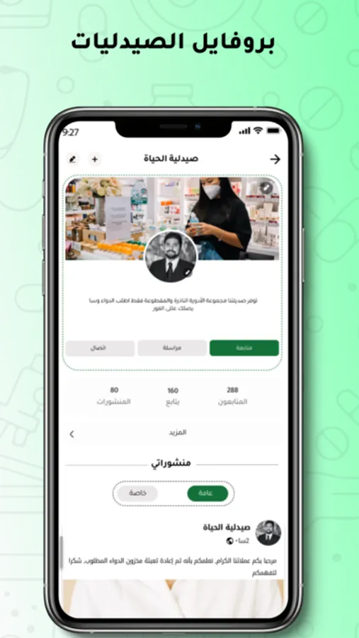1- متابعة جديد الصيدليات والتواصل معهم من خلال خاصية المحادثة و الاتصال.