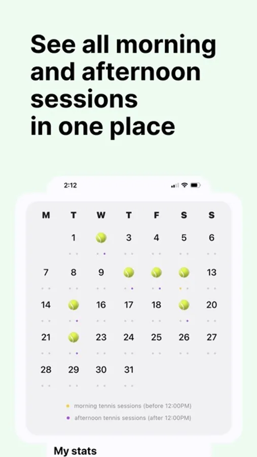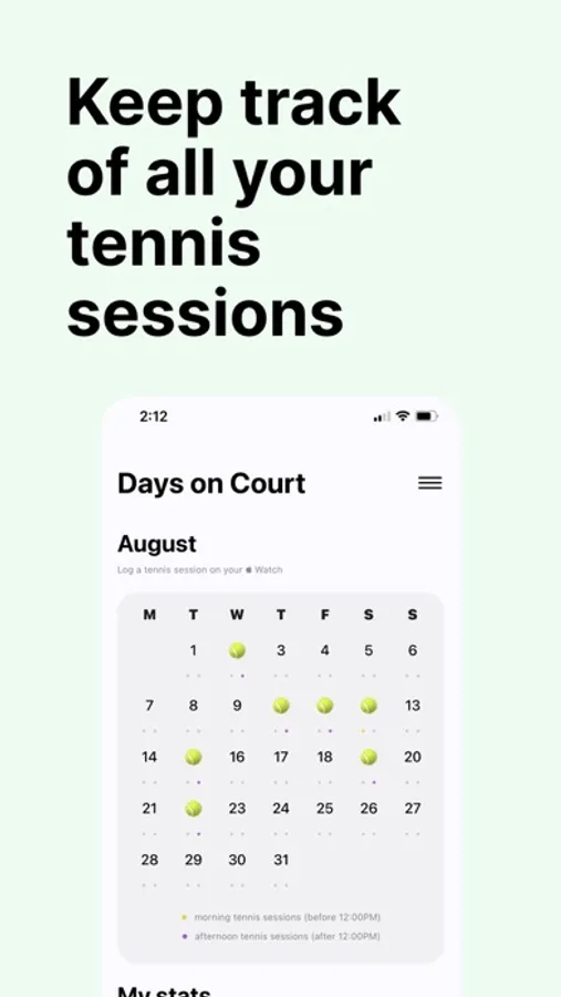 Keep track of your tennis sessions. Log tennis sessions with your Apple Watch® and use data from the Health app to automatically update your calendar.