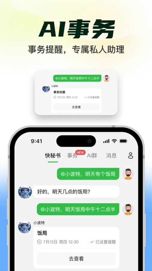 快秘书是一款针对商务人士打造的高效办公App,旨在让商务人士在AI助力下提高效率,为用户带来更加高效的工作&生活体验。具有以下几个核心特点: