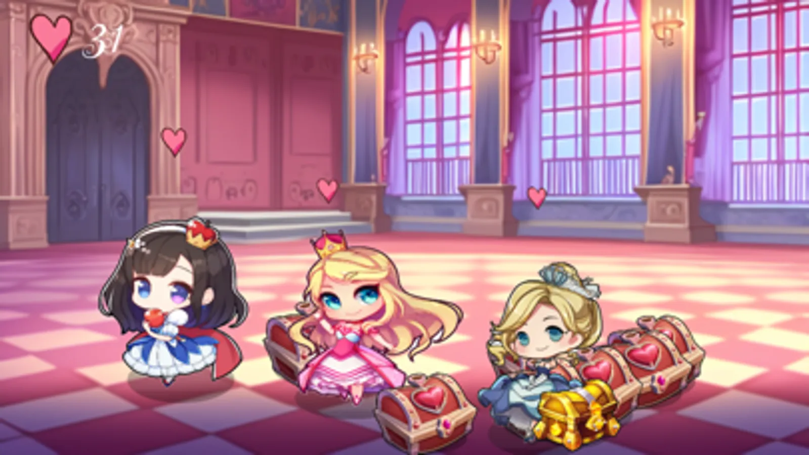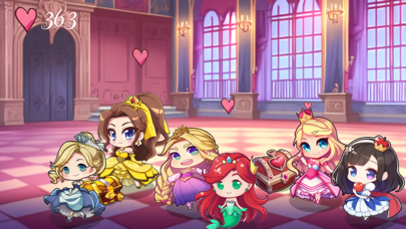 The game features many popular princesses, all presented in a charming anime chibi style.