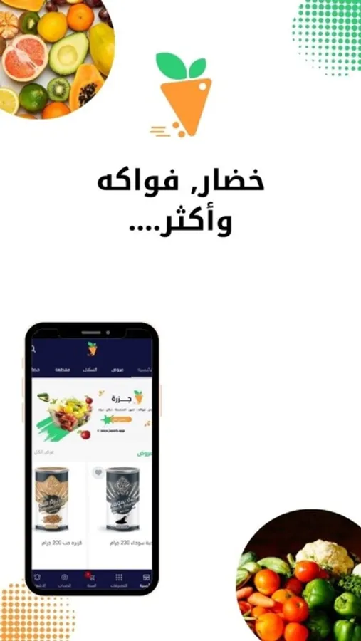 تطبيق جزرة يوفر لكم مقاضي البيت من خضروات وفواكه ولحوم و غيرها بأسلوب تسوّق سهل وخيارات موسّعة، لتصل إلى محبي الأغذية الطازجة والشهية. ،مع توصيل سريع مبرد ومضمون.
